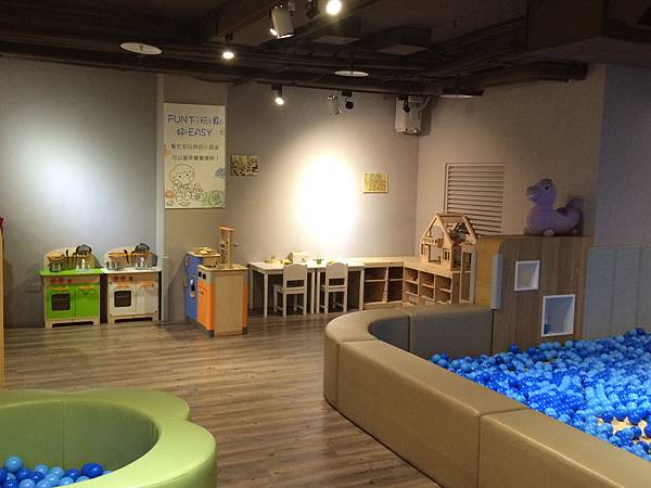 有男孩女孩都愛的木製廚房玩具、大小球池,最右邊沒拍到的地方還有座溜滑梯