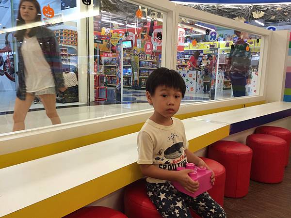 原本想讓小豆在這裡玩久一點消耗體力,但他玩積木卻只玩了一下下,就被旁邊的湯姆熊遊樂場和遊戲愛樂園吸引走了....